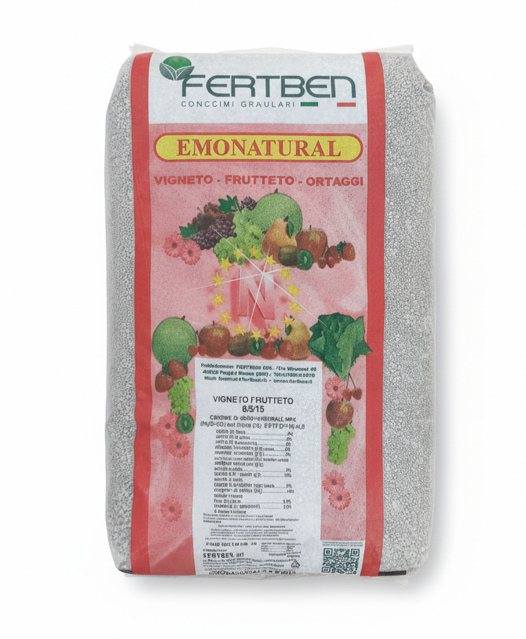 EMONATURAL VIGNETO/FRUTTETO è il formulato organo-minerale progettato per le colture arboree di pregio che richiedono un equilibrio specifico (rapporto NPK 1,5:1:3) orientato alla qualità, alla colorazione e all'accumulo di zuccheri. Grazie alla sua complessa dotazione di meso e microelementi, è la scelta ideale per la concimazione post-raccolta e alla ripresa vegetativa di vigneti, frutteti, agrumeti e actinidia.